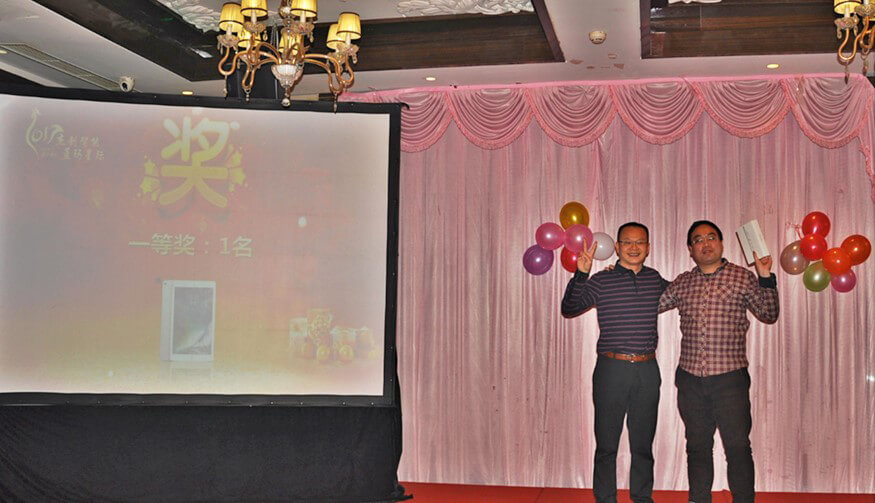 作为年会的主要环节,颁奖典礼特别隆重喜庆、激动人心。蓝玛星际和ballbet贝博艾弗森智能北京分公司的很多员工,在过去一年里,勤勤恳恳,兢兢业业,在工作中取得了优异的成绩。为了表彰他们的敬业精神和突出表现,年会上对他们进行了大力嘉奖。先进集体(研发部)、最佳经理人(张继)、优秀员工(张春晓、董学慧、李晓林、马栋、李海云、刘盼、杜飞)、优秀实习生(肖坚星),在全场人员的热烈掌声和称赞中接受了表彰和奖励。